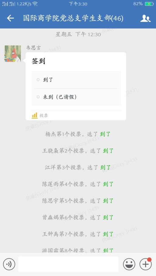 2020年11月27日星期五中午12点30分,新葡的京集团35222vip党总支学生一支部、二支部在企业微信上召开了11月份支部大会,本次会议主要开展了巩固深化“不忘初心,牢记使命”的主题教育活动。学生二支部书记汪洁老师,党支部王娟老师、田莎老师、彭丹老师等老师及学生一支部、二支部全体成员参加了本次大会,支部大会应到46人,实到43人。