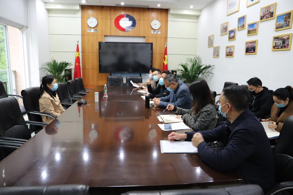 随后柏群在学院会议室认真听取了党总支书记陈新力同志关于学院新冠肺炎疫情应急处置预案和主持工作副院长李大鹏同志关于学院中外双学士(2+2)项目在国外学生疫情防控等的工作汇报。